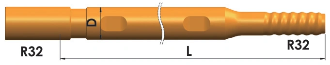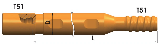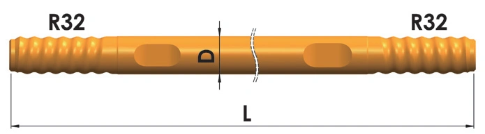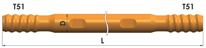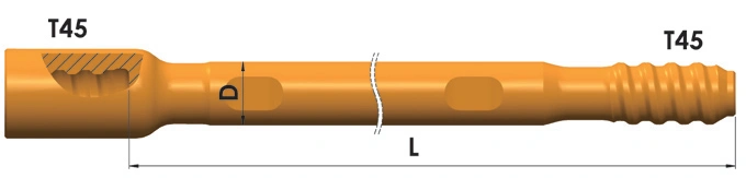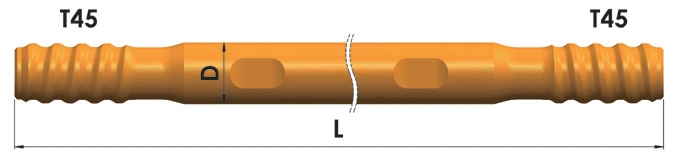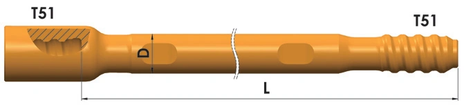 Diseñadas para usarse con perforadoras de roca neumáticas montadas sobre rieles y equipos de perforación subterránea totalmente hidráulicas, estas barras de perforación se aplican ampliamente en perforaciones de producción minera subterránea, pozos de voladura de profundidad media, pernos de roca y pozos de soporte.